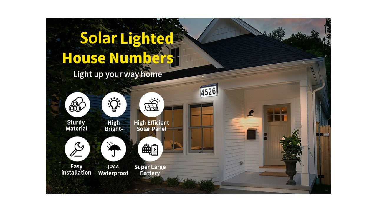 【Long Working and Clear Numbers】Our house number plaques with numbers can Illuminate 8-10 hours at night after 6 hours full charged during the day. 10 pcs 12 lumens cold white LEDs and the latest energy management chip make this plaque works well for you. (Without direct sunlight, the lighting time will be reduced.)
