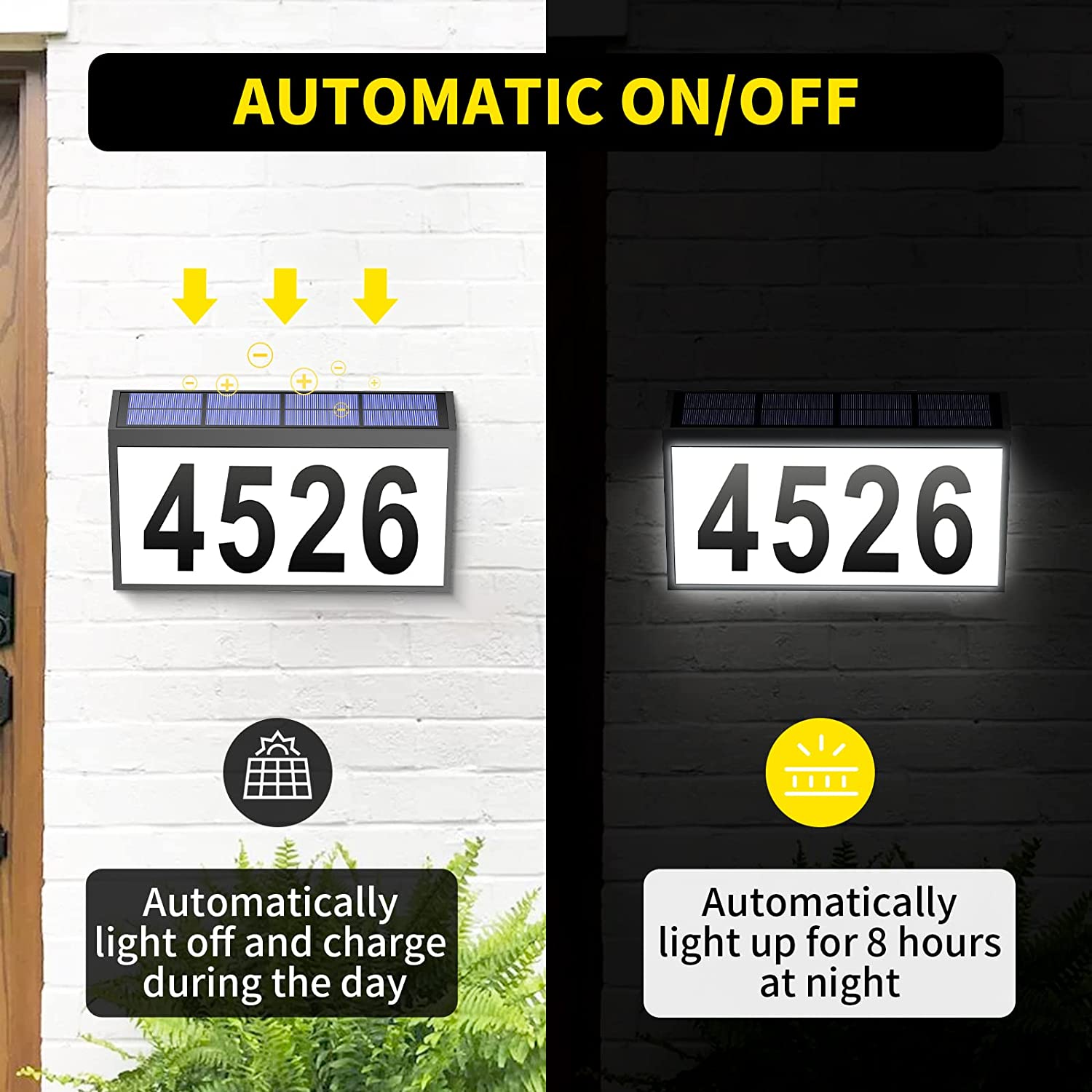 【Get Noticed Easily】This house number plaque for outside makes your address numbers more visible in the darkness for visitors, delivermen and passersby, no more searching in the dark.